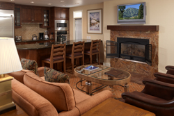 The many Deluxe Lodge options include studio, one, two and three bedroom units with one king, one queen or two twin beds in each bedroom, a large marble bath for each bedroom, fireplace, living room, gourmet kitchens and dining table for six.